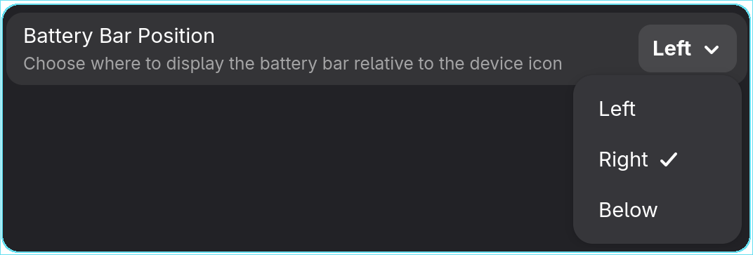 - Battery Level Bar: display a battery bar below the device icon.