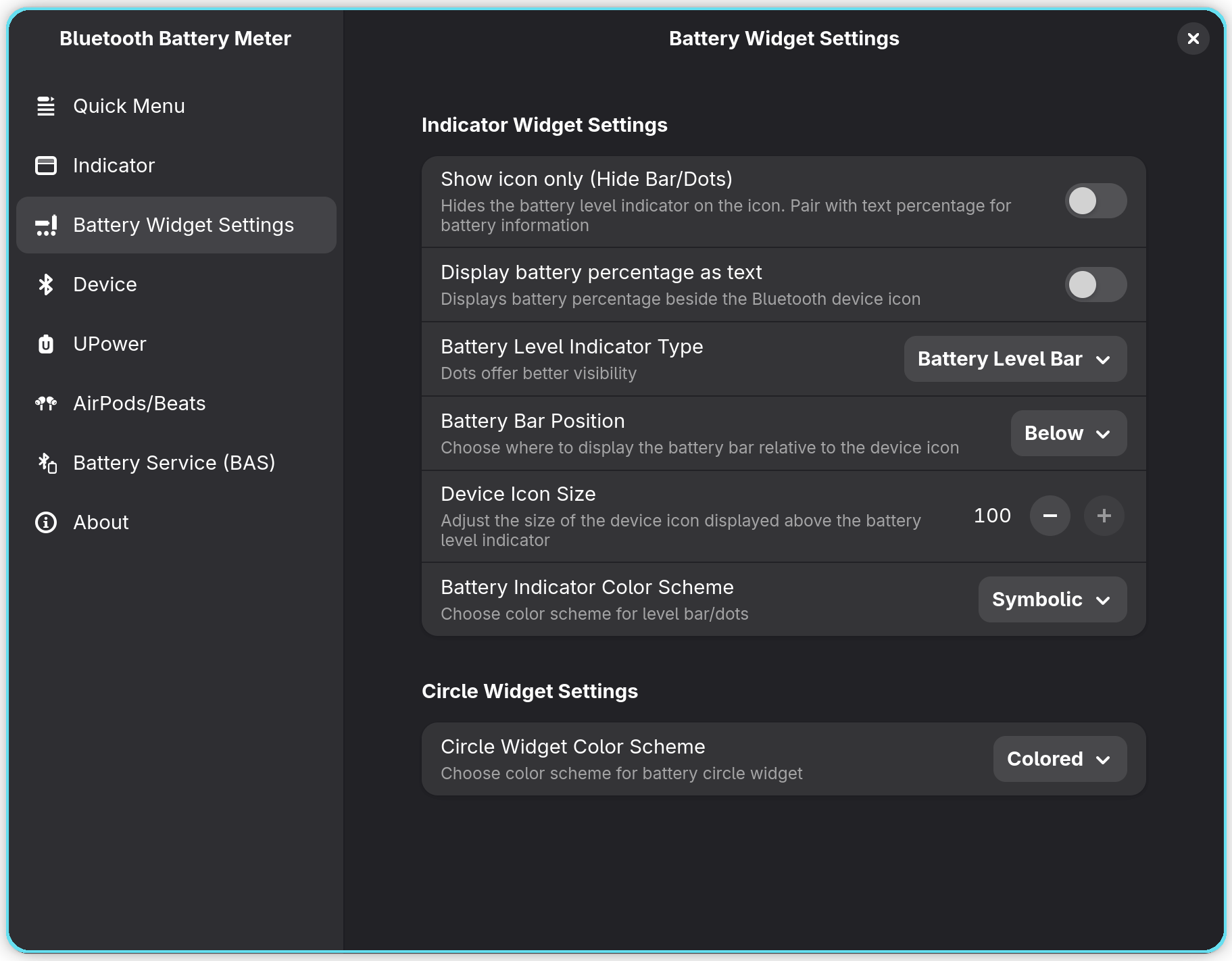 Battery Widget Settings