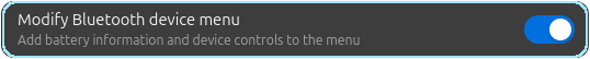 Shows the battery percentage of supported Bluetooth devices as text in the Bluetooth quick menu.