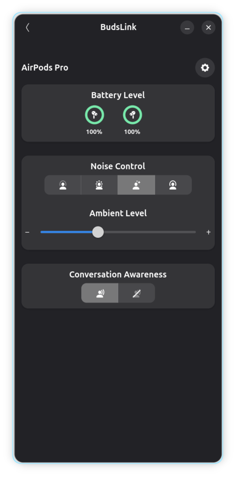 AirPods Bluetooth sockets can be accessed by only one application at a time. Do not run other AirPods companion or monitoring apps while using BudsLink, such as: